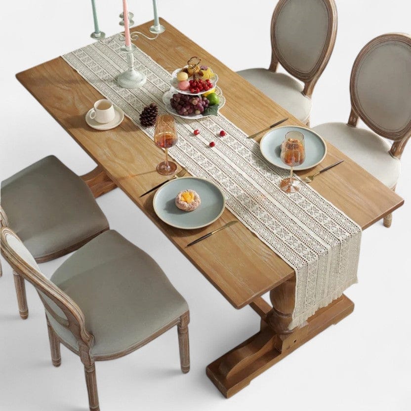 Que ce soit pour un dîner romantique, une fête familiale ou une réception élégante, un runner de table artisanal blanc s'adapte parfaitement à tous vos événements. Sa couleur intemporelle se marie harmonieusement avec votre vaisselle et votre décoration existante.